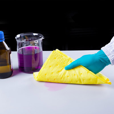 Zestawy do kontroli wycieków Absorbent Pads są używane do małych wycieków. W przypadku rozlewania należy używać klocków, aby zakryć obszar rozlania, dopóki wycieki nie zostaną całkowicie wchłonięte.
